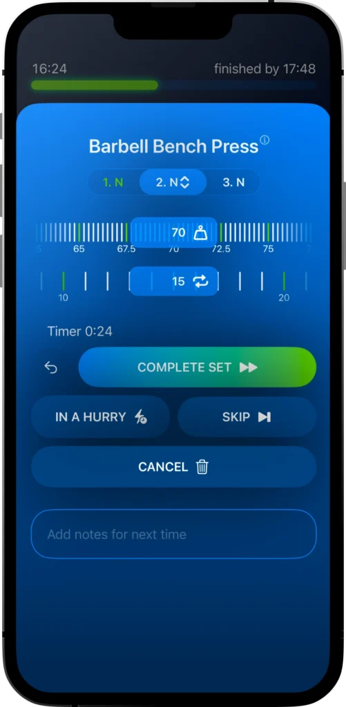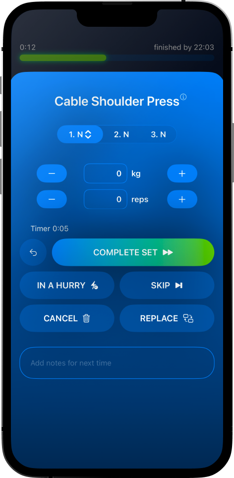 Adjust your progress with a tap. No distractions, just pure training. Designed for Speed and Simplicity.
