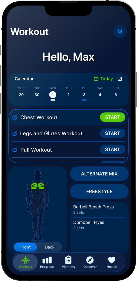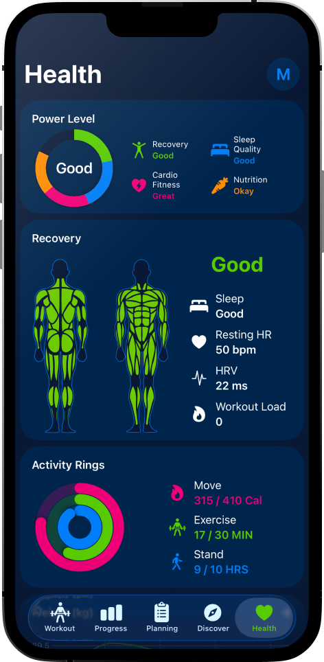 The front and center of our app is you and your workouts. You can import your existing workouts or get a new, personalized schedule tailored to your body, experience and goals.